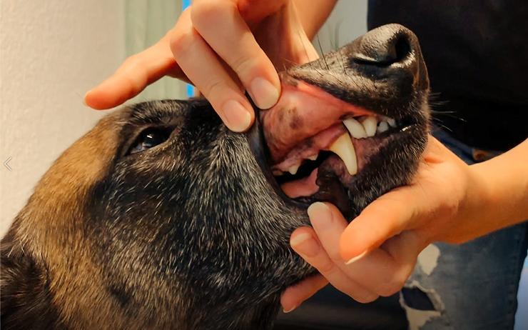 Die Schleimhäute geben sehr viele und wichtige Informationen über den aktuellen Kreislaufzustand. Am besten heben Sie dafür die Lefzen an und schauen sich Zahnfleisch, Zunge und Lefzeninnenseite an. Normale Schleimhaut ist rosa, feucht, glatt und glänzend. Wenn ein Hund stark pigmentiert ist, z. B. Eurasier, sollten Sie sich auch die Bindehäute der Augen anschauen. Mit den Fingern bekommen Sie einen Eindruck, ob das Tier gut hydriert ist, also ob der Körper über genügend Flüssigkeit verfügt. Normalerweise werden die Finger schön feucht. Ist das Tier dehydriert, bleiben Sie auf den Schleimhäuten «kleben» und haben höchstens klebrigen Schleim an den Fingern. Die Schleimhäute glänzen bei Dehydrierung auch nicht mehr.